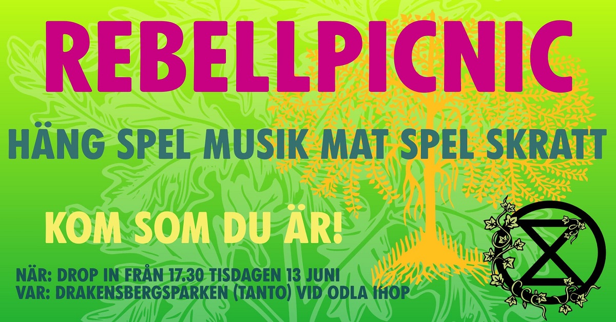 Picnic i parken med dina favoritrebeller! Vi bjuder på mat och musik, tar med nåt spel, du kommer som du är, kanske med en extra picnicfilt om det går! Vi ses vid Odla Ihop i Drakenbergsparken!